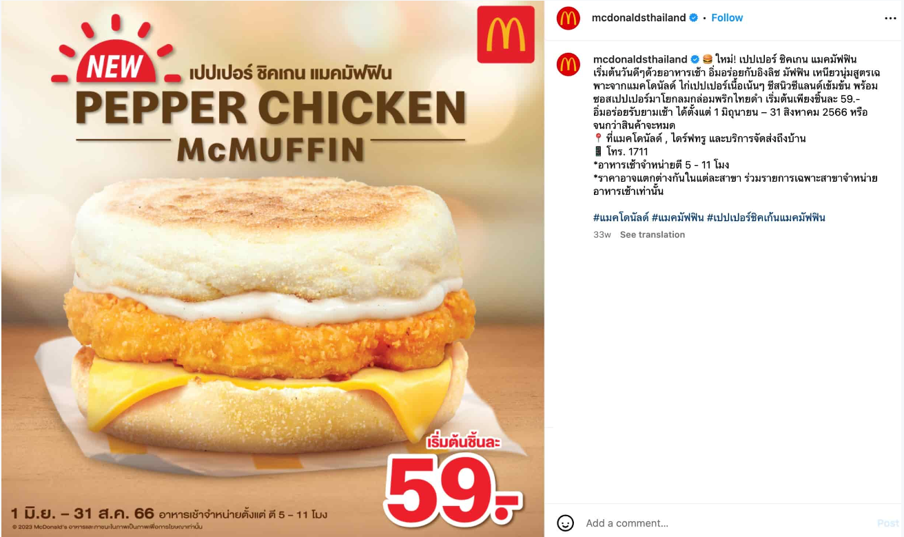 McDonald’s es un ejemplo excepcional de localización, ya que utiliza cuentas de Instagram específicas de cada país para destacar recomendaciones de productos basadas en menús locales: